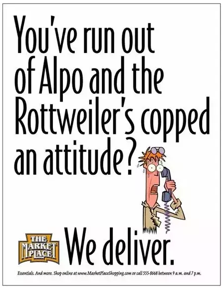 我们说过,“尺寸”的意思并非说一定要很大,如下面这个报纸的半页广告,你很难忽略它。原因恰恰时它的元素尺寸非常小,这仍然是一种强对比的设计 大面积的留白空间与小元素形成强烈对比。
