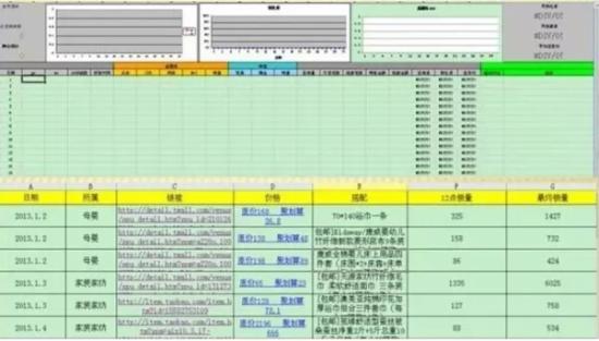 推广的表格核心是:跟踪没一个推广中的产品,数据分别是流量,反馈,DSR3个维度,数据很多根据自己店铺情况来做好记录。