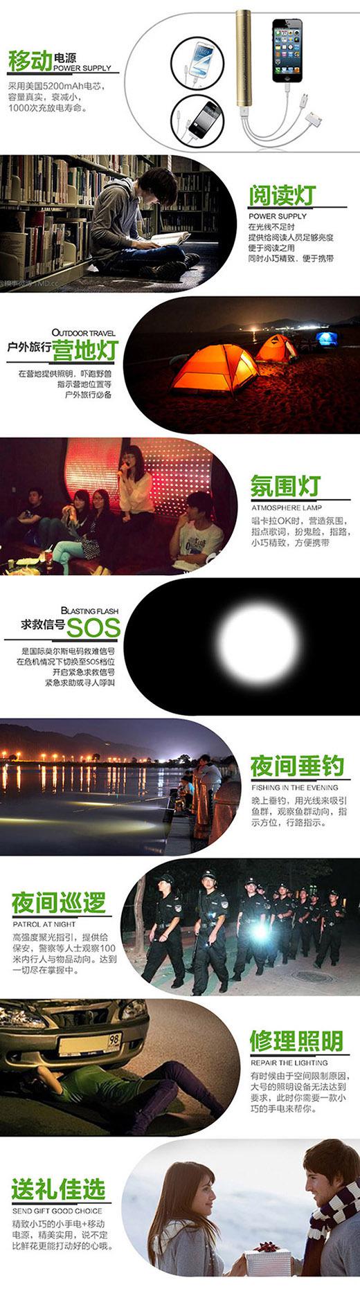 (把灯的实用性场景列出来,让顾客对号入座,原来还可以用在这么多的地方,提醒顾客这是非常实用的装备。产品好看外观看上去又炫又酷,吸引年轻女性朋友和特殊工作者购买)