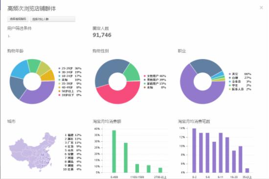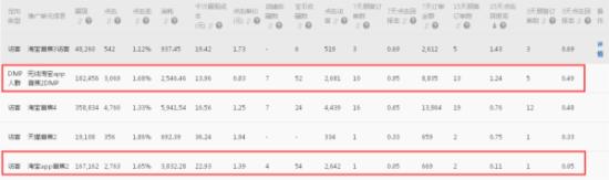 3、定向方面前期是用了访客来做测试,白天跟晚上的计划用的都是同一批定向店铺,测试4天左右之后,在回报率方面不是很好,定向方面做了下优化,改成了DMP定向,主要投放的群体是高频次浏览店铺,在回报率方面相比访客定向要占优势一些,后续的投放主要就是侧重的DMP定向了,以下是DMP定向投放的群体情况。